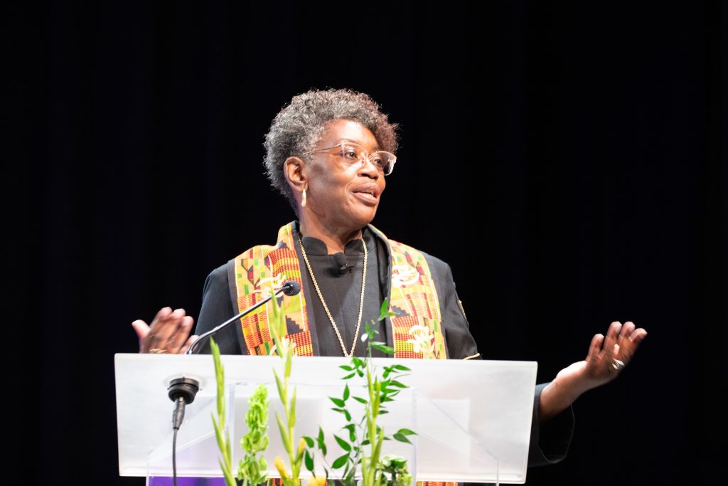 In the Episcopal address, Bishop Laura Merrill offered relatable examples of “home” and also shared, “I am tired of being flung away from other people… Love in the economy of God is more important than perspective.”