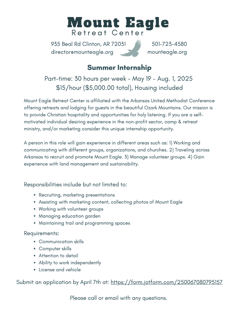 Mount Eagle Retreat Center is looking for a summer intern for 2025!
