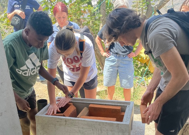 One of the most powerful parts of the trip was installing eco stoves in several homes. Many Guatemalan families still cook over open fires or expensive gas stoves, which can be both dangerous and unhealthy. Eco stoves are a safer, more efficient option—they use less wood, reduce indoor smoke, and even open the door for small business opportunities like selling tortillas. At around $150 each, eco stoves are a major expense for families. Getting the stoves into homes was no small feat either—volunteers carried heavy concrete blocks up rugged, narrow hillsides, sometimes using wheelbarrows that had to be pulled with ropes and pushed at the same time.