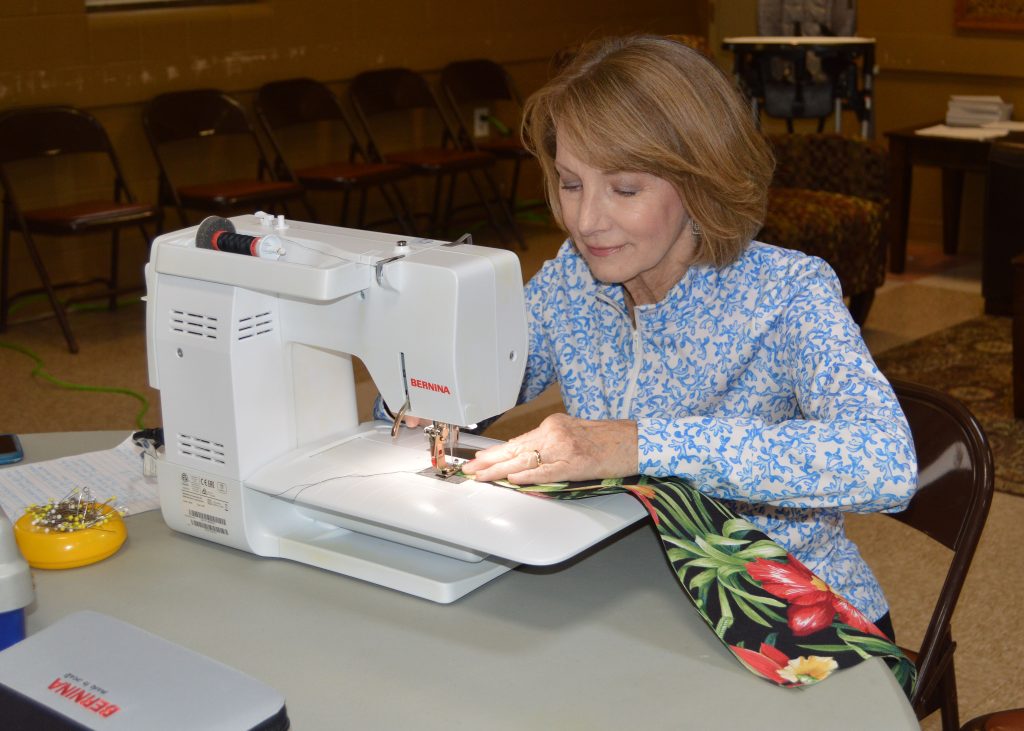 At the church’s recent Christmas Coffeehouse, supporters were able to make donations to financially fund a tote bag, and the ladies of the Nell Dyer Circle hand made each bag on Dec. 3. At the coffeehouse, each donor personally signed a tag card that will be attached to each bag indicating their support and the fabrication by the Nell Dyer Circle members.